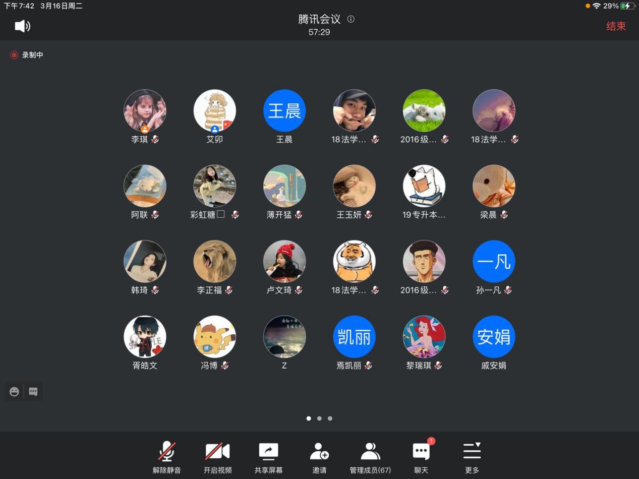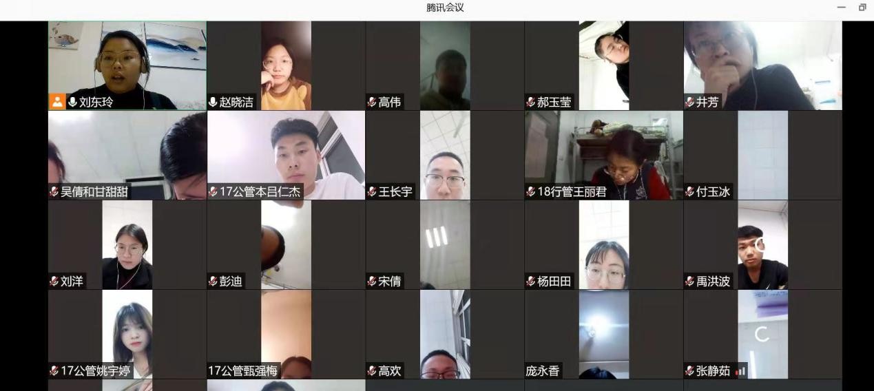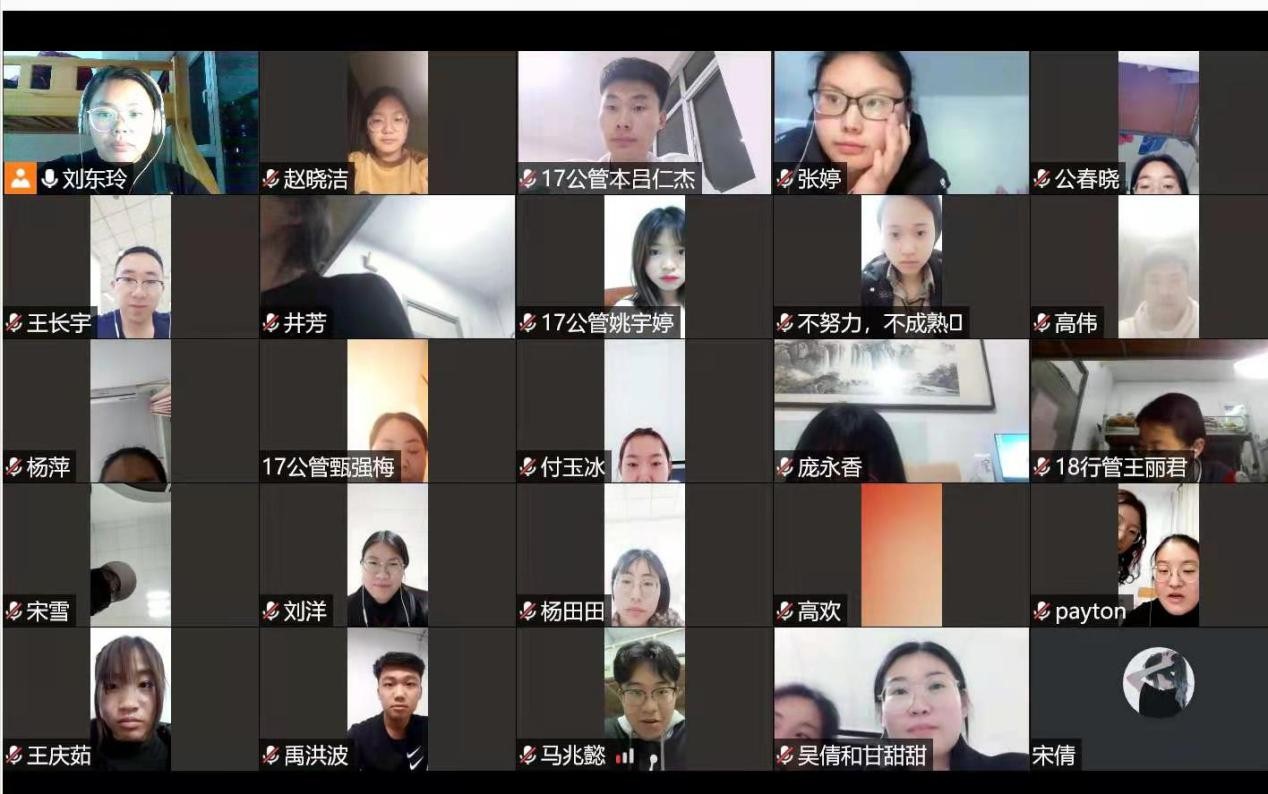 2021年3月16日19:00-21:30,考研专班组织邀请李敏、李星星、丁梦钊、董文雪、王玉鑫、陈吉嘉、李桂杰、樊欣娜、徐亚汝等19名在读研究生同学通过腾讯会议与2021届考研学生进行线上交流。学长学姐们从面试流程与注意事项、面试准备与技巧、面试着装与精神风貌等方面与2021届学弟学妹们深入交流。线上交流还设置了互动答疑环节,帮助大家解决个别疑问。