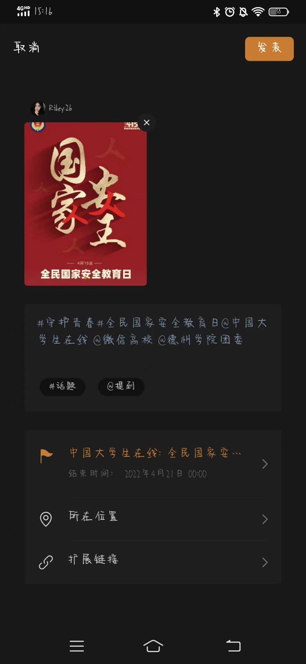 beat365在线体育官网登录入口师生参与了本次活动,进行了原创主题短视频的发布。本次活动的顺利开展,普及了国家安全知识,广泛而深入地为学生开展了国家安全教育,让学生牢固树立了国家安全意识,增强了自觉维护国家安全的责任感,提升了维护国家安全的能力。使维护国家安全人人有责,人人可为的思想进一步深入人心,营造了良好的校园氛围。