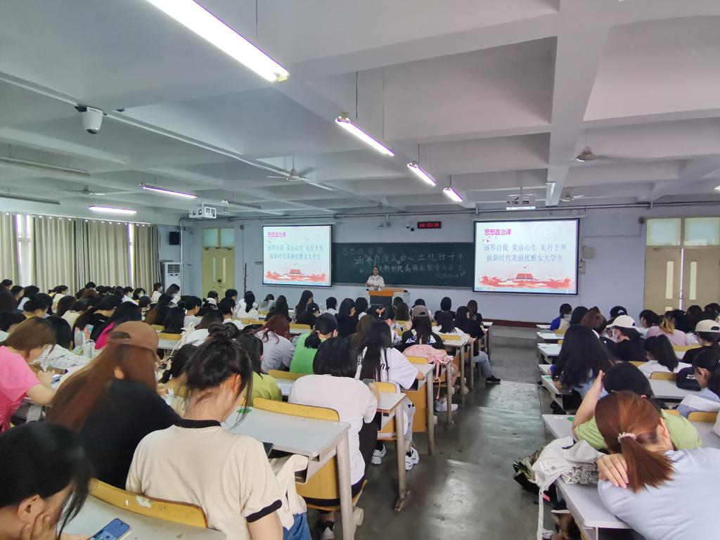 2022年6月9-10日,beat365在线体育官网登录入口分别在博文楼0427教室和美术楼0409教室开展以“涵养自我 美由心生 礼外于行 做新时代美丽优雅女大学生”为主题的思想政治课。学院2019级、2020级、2021级全体女生聆听了讲座。