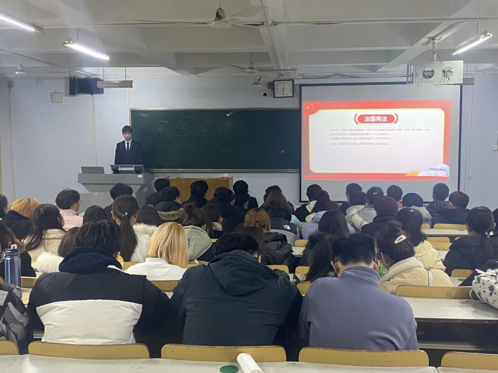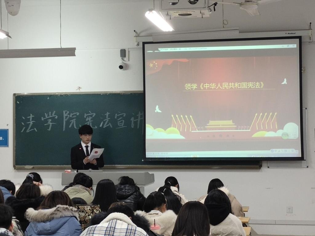 为深入学习贯彻习近平法治思想,普及宪法基本知识,大力弘扬宪法精神,培养大学生群体维护宪法、遵守宪法、捍卫宪法的意识与能力,12月4日以来,在beat365官网党委宣传部、团委的大力支持下,beat365在线体育官网登录入口组织法学专业同学成立大学生宪法宣讲队,深入各院系教室、宿舍开展宪法宣讲活动。