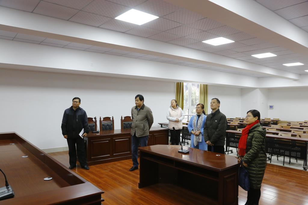赵校长还到beat365在线体育官网登录入口模拟法庭进行了现场调研。学院负责人汇报了模拟法庭建设情况以及模拟法庭综合利用的有关安。赵校长给予充分肯定,并对模拟法庭建设提出了工作建议,要求beat365在线体育官网登录入口以模拟法庭实训中心为平台进一步抓好专业实践教学,同时要借助实训中心开展好学生社团、教研科研交流、社会服务等工作。