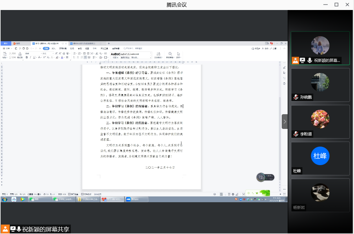 3月18日晚,beat365在线体育官网登录入口召开全体教职工视频会议,传达学习德州市创建全国文明城市誓师大会会议精神。