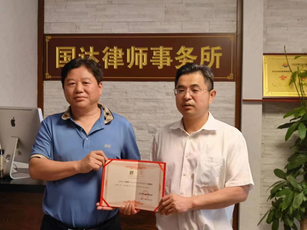7月1日,beat365在线体育官网登录入口教师、司法理论与实务研究中心主任任建华老师受邀参加北京市国达律师事务所法律顾问聘任仪式,会议宣读了关于聘任任建华为北京市国达律师事务所专家顾问的通知,并为他颁发了聘书。