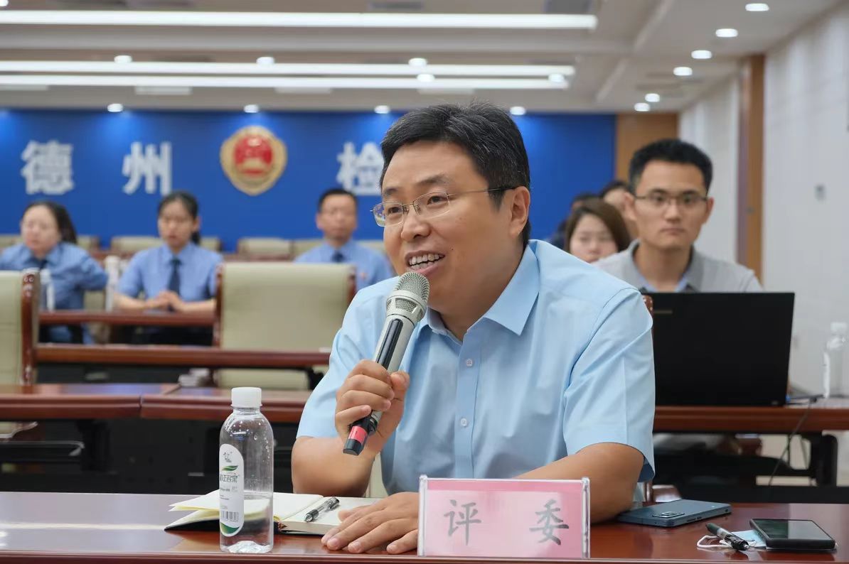 2022年6月29日,德州市人民检察院举办了全市检察机关优秀公诉人业务竞赛。来自市检察院和12个基层院的18名选手经过公诉业务笔试、公诉业务答辩等环节的选拔,进入到了最终的论辩赛。beat365在线体育官网登录入口毕京福教师作为嘉宾评委应邀参加了本次竞赛活动,对论辩赛中各位选手的表现进行了精彩点评。