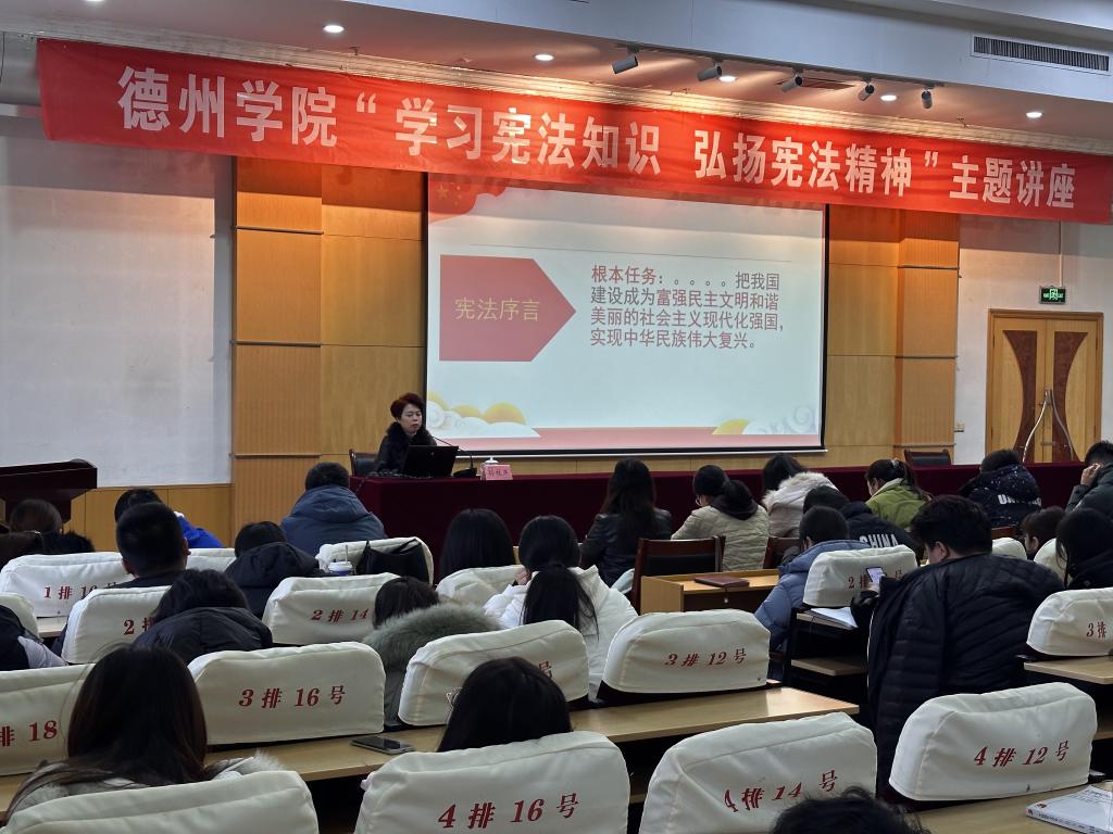 12月4日是我国的第十个国家宪法日,为在全校范围内普及宪法知识,提高师生们的宪法意识。12月13日,由学生处主办,beat365在线体育官网登录入口承办的“学习宪法知识 弘扬宪法精神”主题宣讲活动于厚德楼四楼报告厅进行,beat365在线体育官网登录入口副教授孙桂燕老师主讲,全体辅导员、学生代表及学生处相关人员参加了本次活动。