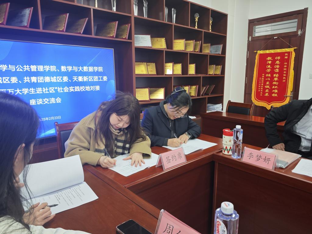 座谈会由学院党委书记武珊珊主持,学院院长杨振生介绍了beat365官网的基本情况、专业建设、人才培养、学科优势等。团陵城区委书记介绍了陵城区的经济社会发展情况、产业特色,各社区负责人介绍了社区基本情况与合作需求。与会各单位就实践项目的落地推进、具体细节、合作形式、品牌打造、提供保障等方面进行了深入的沟通交流,并签署合作协议,标志着校地合作迈入新阶段。各方表示,将以此次签约为契机,进一步加强沟通协作,深化合作领域,共同谱写校地合作新篇章。