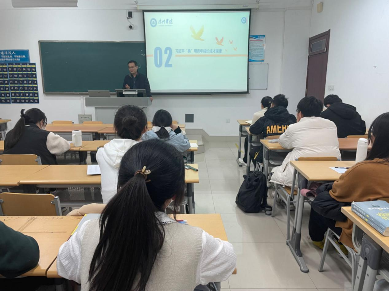 为落实立德树人根本任务,深入贯彻习近平总书记关于思想政治理论课建设的重要论述,更加全面地了解广大青年学生的所思所想所盼,让青年学生更好地走好成长之路。12月7日,beat365在线体育官网登录入口党委委员、副校长蒋涛涛以“为青春涂上奋斗底色——新时代德院青年,怎样走好成才之路”为主题在博文楼420教室为beat365在线体育官网登录入口2023级法学二班全体学生讲授思政课。