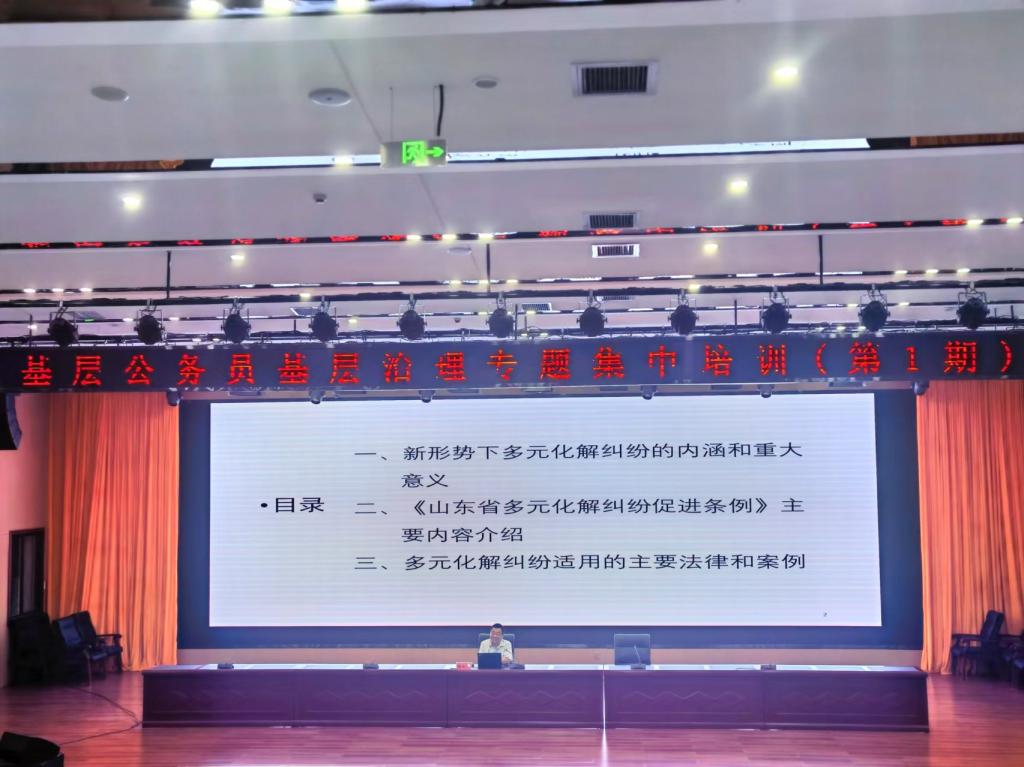 讲座内容主要包括三个部分。杨振生首先讲述了新形势下多元化纠纷解决机制的概念、特征和时代意义;然后介绍了《山东省多元化解纠纷促进条例》的主要内容;最后分析了多元化解纠纷适用的主要法律和实际案例。此次讲座既有法学理论讲解,又有实际案例分析,得到了培训班学员的好评,取得了较好的效果。