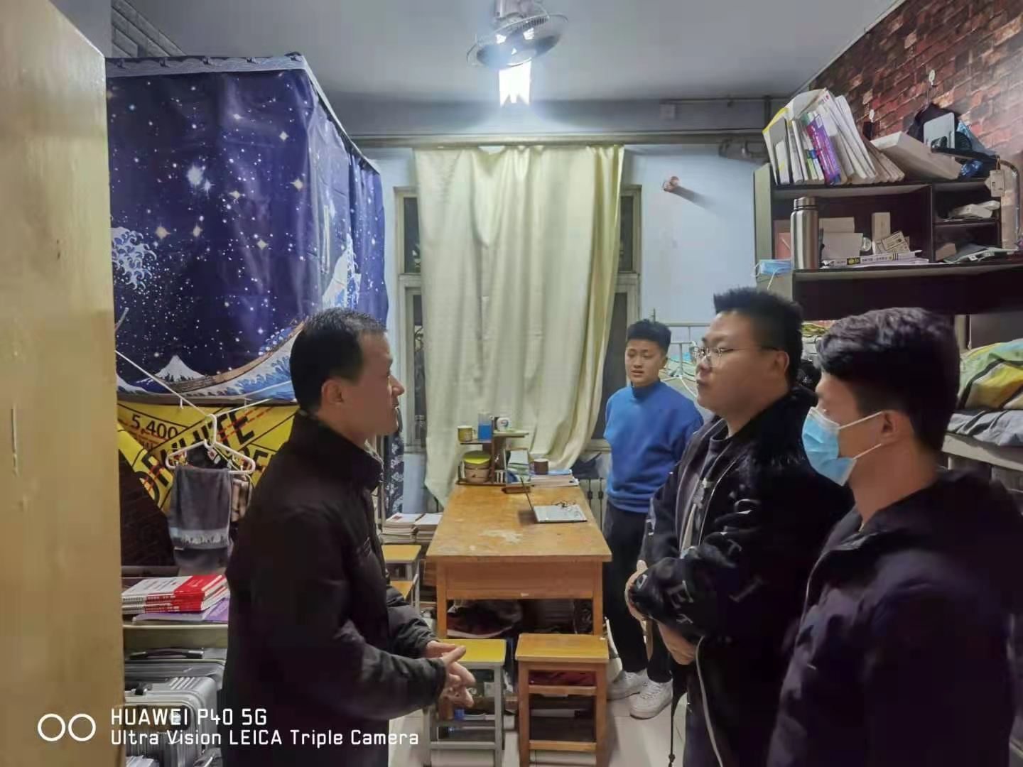 2021年3月1日,beat365在线体育官网登录入口第二教师党支部书记陈伟到八号公寓学生宿舍进行走访,陈伟深入各个宿舍询问学生的到校情况,了解部分同学未到校的原因。
